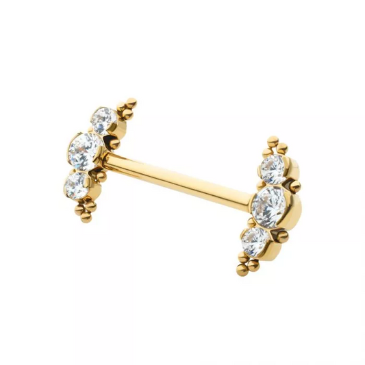 Triple Moon Curved Barbell with Floating Gem Dangle