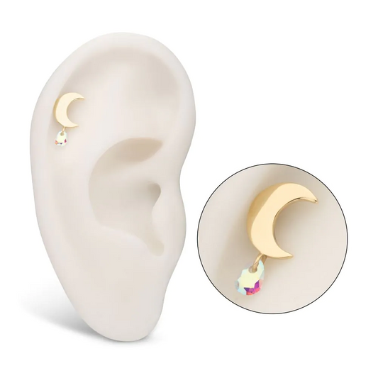 14k Gold Moon w/ Pear Swarovski® Dangle