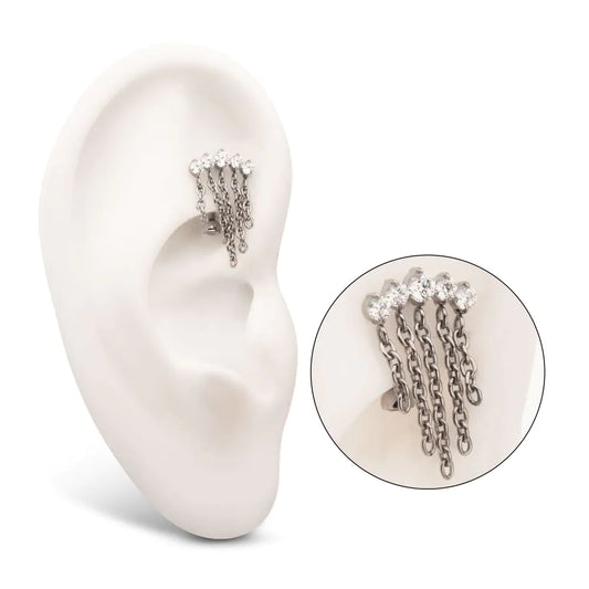 5-Gem Cluster Curved Barbell with Double Chain Dangle