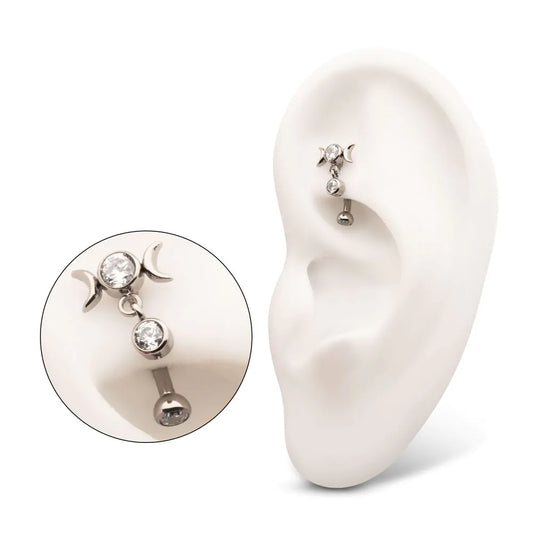 Triple Moon Curved Barbell with Floating Gem Dangle
