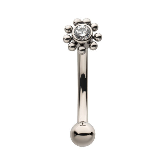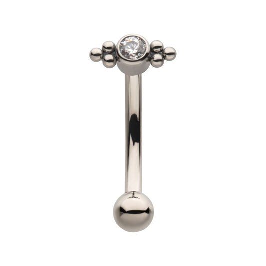 Bezel CZ & Double Tri-Bead Curved Barbell