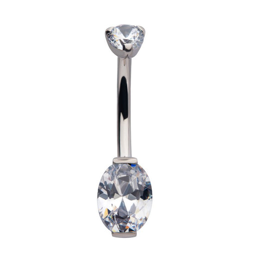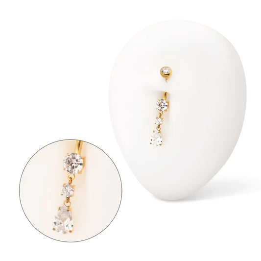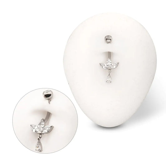 Triple Marquise Navel Barbell with Floating Teardrop Gem Dangle